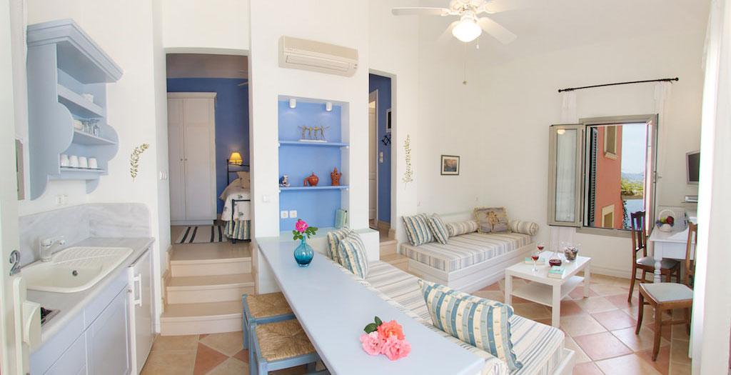 Toen ik tijdens een eerdere reis in het plaatsje Assos belandde, wist ik dat ik Kefalonia's mooiste plek gevonden had. Ik was op slag verliefd op het levendige dorpje met z’n mooie baai, smalle straatjes en prachtige rotskust. Helaas was ik er maar één dag, een dag die ik beëindigde op één van de vele gezellige terrasjes met uitzicht op een fenomenale zonsondergang. Hier moest en zou ik nog eens terugkomen, beloofde ik mezelf. Je begrijpt dat m’n verwachtingen hoog gespannen waren toen ik weer voet aan wal zette op het eiland. Zou Assos echt zo mooi zijn als ik me herinnerde? Vol spanning meldde ik me bij de statige poort van Roi Apartments. Een luxe, kleinschalig appartementencomplex middenin het dorp, stijlvol in roze geschilderd en met overal weelderig bloeiende bloemen. Meteen was ik gerustgesteld door deze veelbelovende entree. En toen moest het mooiste nog komen! De ontvangst was allerhartelijkst, mijn appartement helemaal fantastisch, en overal hing de geur van bloeiende bloemen. Maar wat dit verblijf echt uniek maakt, is het zwembad met z´n adembenemende uitzicht op de prachtige kust van Kefalonia. De rest van de week heb ik elke dag weer ademloos genoten van de schitterende vergezichten. Nooit eerder voelde vakantie als een week op een roze wolk…