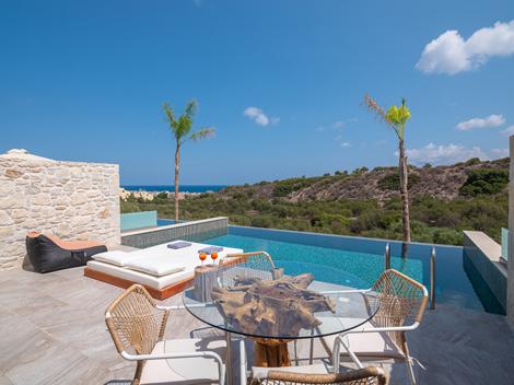 Tijdens een vakantie op Kreta kun je in een bruisende badplaats logeren of op een rustig plekje in de heuvels. Zoals je weet gaat mijn voorkeur uit naar dat laatste. Ik ben dan ook razend enthousiast over mijn nieuwste ontdekking: Diamond Stones Villas. Een luxe hideaway, verscholen in het karakteristieke plaatsje Piskopiano. De ligging is prachtig; midden op de helling van de berg Charakas. Ver van de massa, maar waar wel binnen handbereik van traditionele tavernes en gezellige cafés. In dit idyllische plekje waan je je vooral tussen de lokale inwoners en heb je een panoramisch uitzicht over zee. Tijdens je verblijf proef je niet alleen een ontspannen sfeer in het typisch Griekse dorp, ook in je super-de-luxe suite geniet je van pure rust. Strijk neer op een van de ligbedden of plons in je eigen zwembad, terwijl je op de achtergrond alleen het geluid van tjirpende krekels hoort…