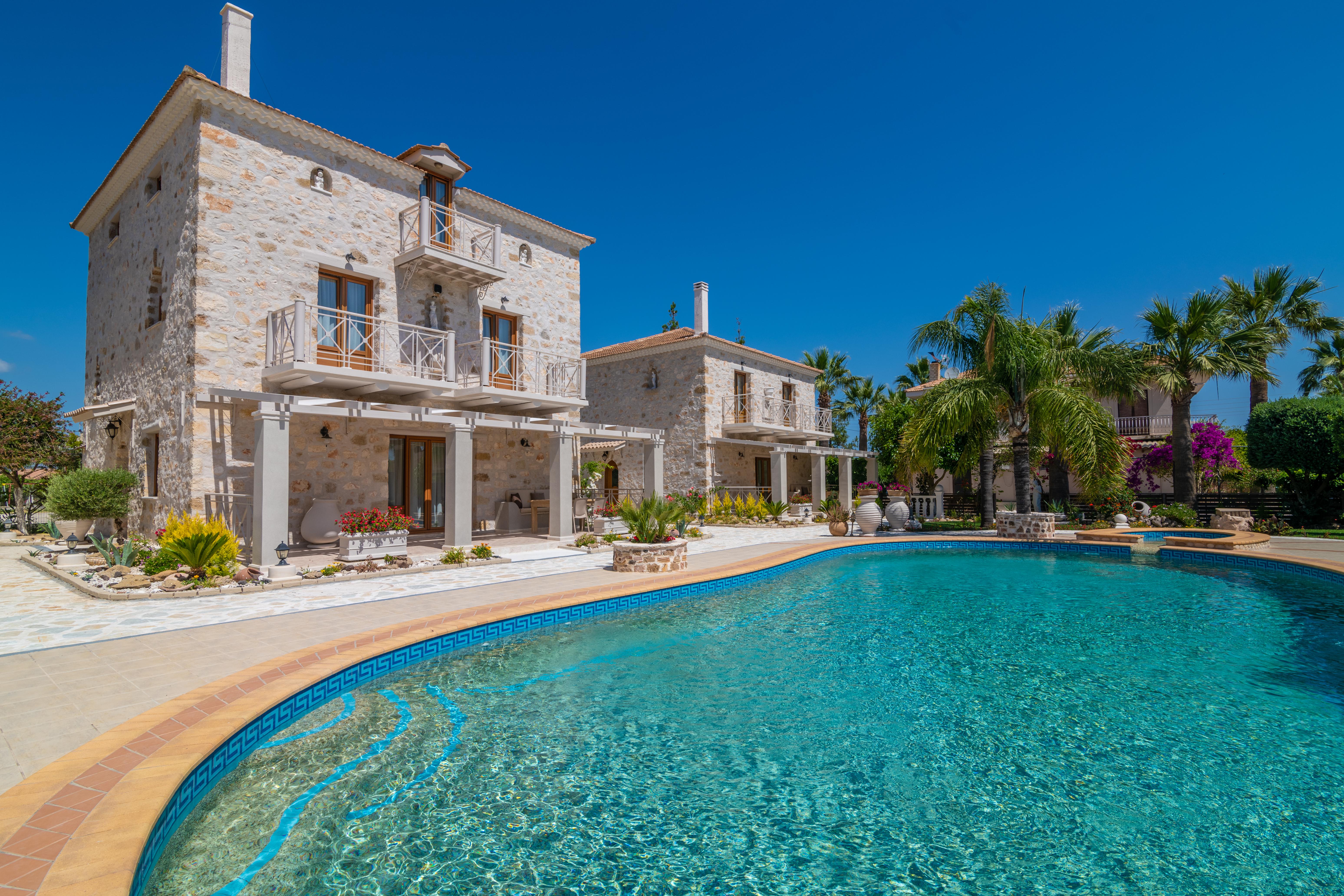 Kostas verwelkomt zijn gasten in stijl: bij aankomst in de villa's staat een mandje vers geplukt fruit en een fles wijn uit de omgeving voor je klaar. De tuin staat vol bloemen en er is een heerlijk zwembad. Op de luxe ligbedden kom je volledig tot rust tijdens jouw vakantie op Zakynthos! Voor de kinderen is er een klein speeltuintje.