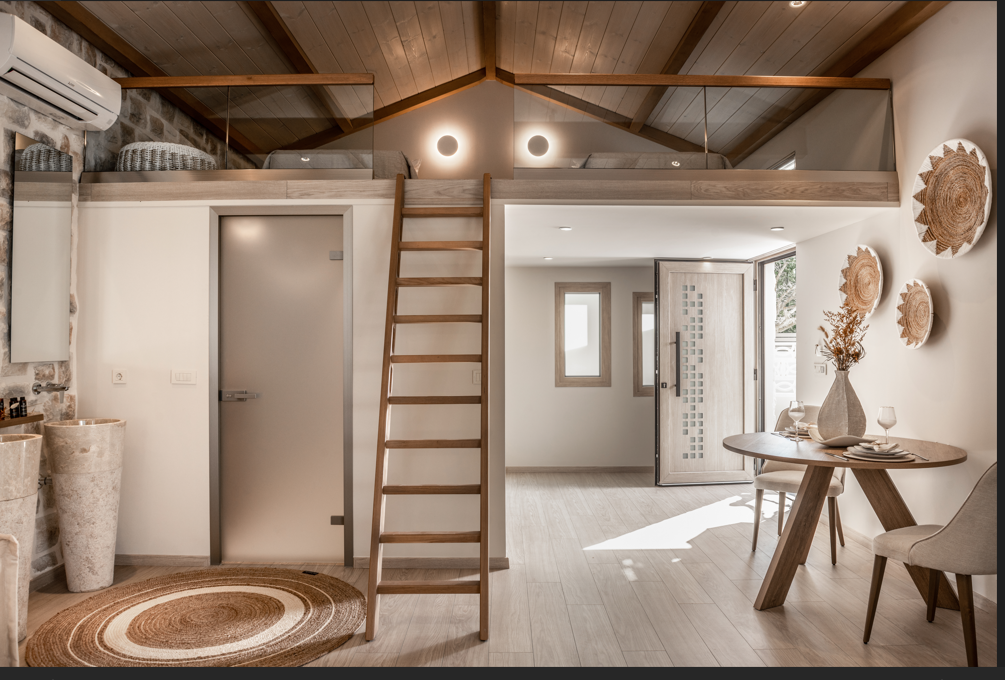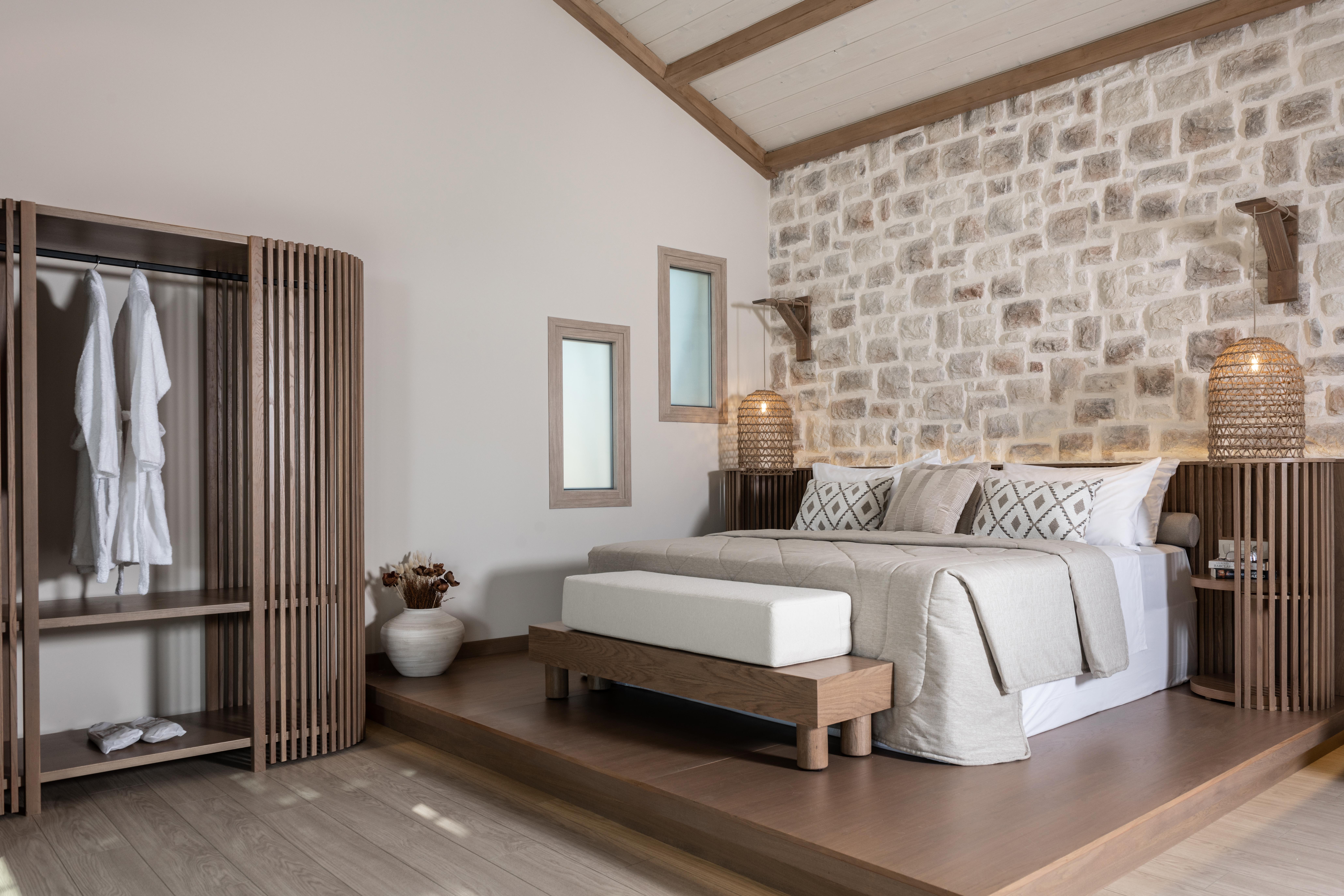 Al op de eerste dag van mijn verblijf voelde ik dat er iets anders dan anders was. De drie huisjes van Archontiko Koutsis hadden iets bijzonders. Alsof deze pas gebouwde huisjes een veel ouder verleden hadden. Eigenaar Kostas begon te glimmen toen ik hem voorzichtig vroeg het verhaal achter dit adresje en begon vol trots te vertellen over zijn levenswerk. Eeuwenlang al is het land in handen van de familie van Kostas. Als kleine jongen kwam hij er vaak op bezoek bij zijn overgrootvader. Tot de aardbeving van 1953, toen honderden huizen op het eiland onherstelbaar werden verwoest. Zo ook het bezit van Kostas’ familie: niets was er over. Decennia lang lag het landgoed er verlaten bij. Toen Kostas enkele jaren geleden de kans kreeg om een luxe vakantieverblijf op te starten, hoefde hij niet lang na te denken. Op het landgoed van zijn voorvaderen heeft hij drie huisjes gebouwd, precies zoals hij zich kon herinneren uit zijn kinderjaren. Met alle mogelijke moderne voorzieningen, maar de details zijn allemaal even authentiek: de natuurlijke materialen, de kleuren, de speciaal op maat gemaakte meubelen. Die Kostas heeft het maar goed voor elkaar: in zijn villa’s laat hij de gelukkigste jaren uit zijn jeugd herleven.
