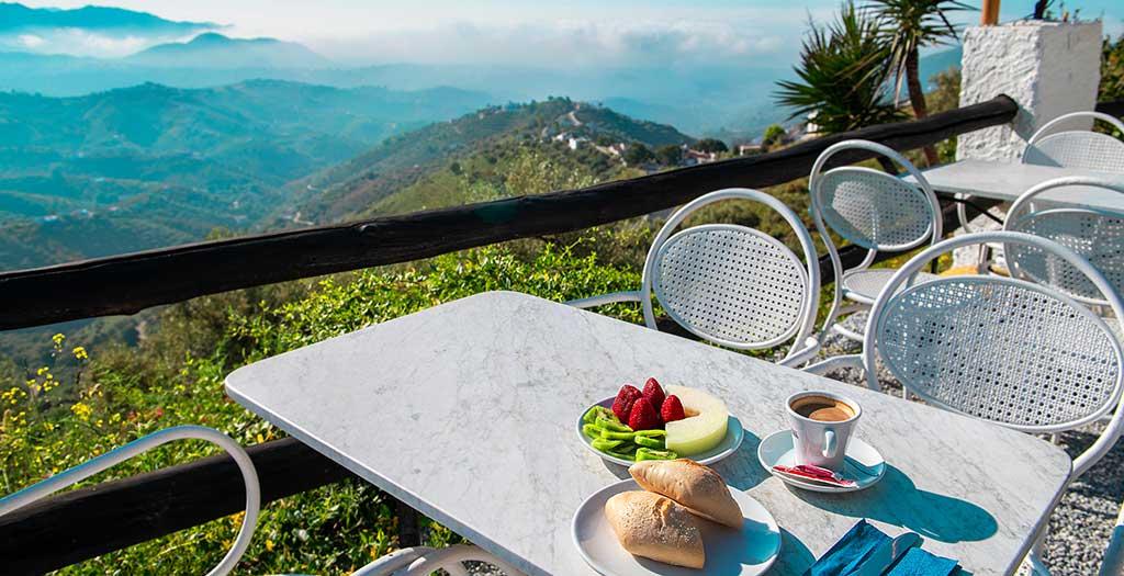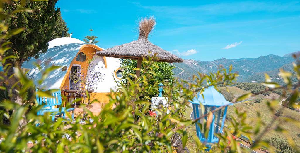 Het is alweer een tijdje geleden dat ik in Hotel Rural los Caracoles del Sevillano ben geweest. Een paar weken geleden heeft Joaquin mij uitgenodigd om dit bijzondere adresje weer te komen bewonderen. Daar zeg ik natuurlijk geen nee tegen. Vandaag is het eindelijk zover en rijd ik met de huurauto door het landschap van Andalusië. Ik kan niet wachten op de huisgemaakte paella en het prachtige uitzicht over de bergen. Door de ongerepte natuur rijd ik over slingerende weggetjes en geniet ik van de groene bergen om mij heen. Aangekomen bij Hotel Rural los Caracoles del Sevillano word ik verwelkomd door Joaquin. Samen lopen we over het weidse terrein. Hier liggen kleine huisjes verspreid, waar je als gast kunt verblijven. Elke keer word ik weer verliefd op het ontwerp met de koepelvorm en de vrolijke kleuren. We maken een korte stop bij het huisje waar ik zal verblijven. De kamer heeft een frisse uitstraling door de witte muren en het bed is heerlijk zacht. Felle kleurtjes zorgen voor een vrolijke sfeer in de kamer. We lopen snel nog even verder om de vergezichten van dit Spaanse gebied te bewonderen. De kleine wandeltocht eindigt in het restaurant van Hotel Rural los Caracoles del Sevillano. De geur van authentieke, Spaanse lekkernijen laten mijn maag knorren. “Ik heb een verrassing voor je, Eliza” Joaquin komt op me af met een grote pan Paella. Ik kan niet wachten tot ik een hapje kan proeven. Als kers op de taart heeft hij een prachtig plekje voor mij gereserveerd met uitzicht over de gebergtes. Dinner with a view; ik vind het hier genieten!